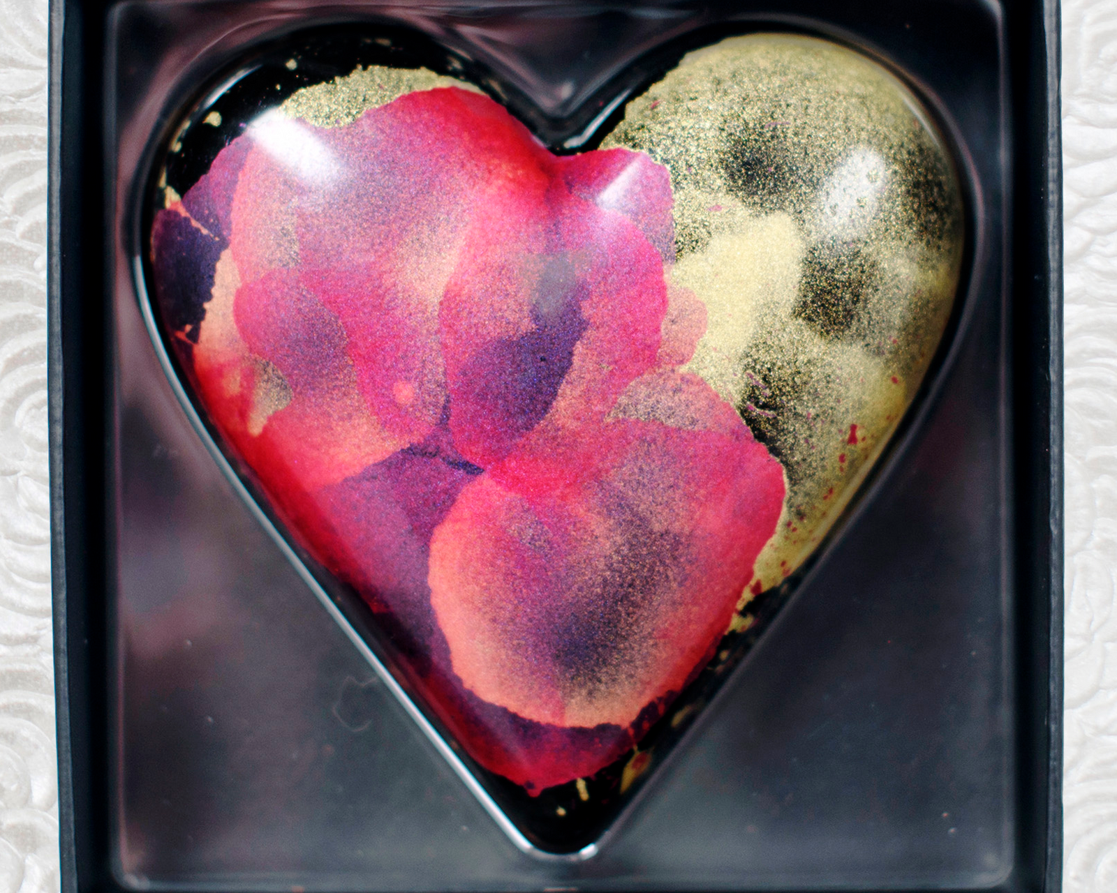 Each Chocolate Jewel™is a miniature composed dessert, made with carefully constructed layers, and featuring flavors inspired by the genius of French pâtisserie such as Crème brûlée and dark chocolate tart